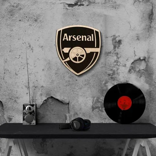 Arsenal Black & White Wooden Crest | 12 inch x 12 inch
