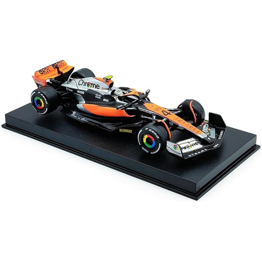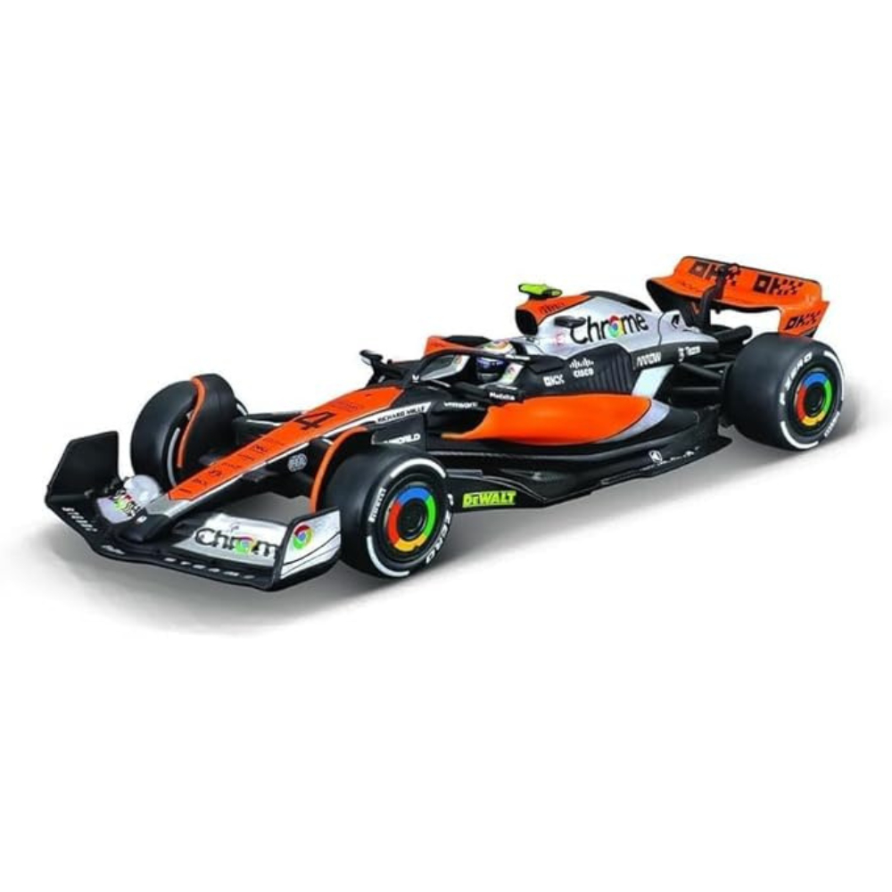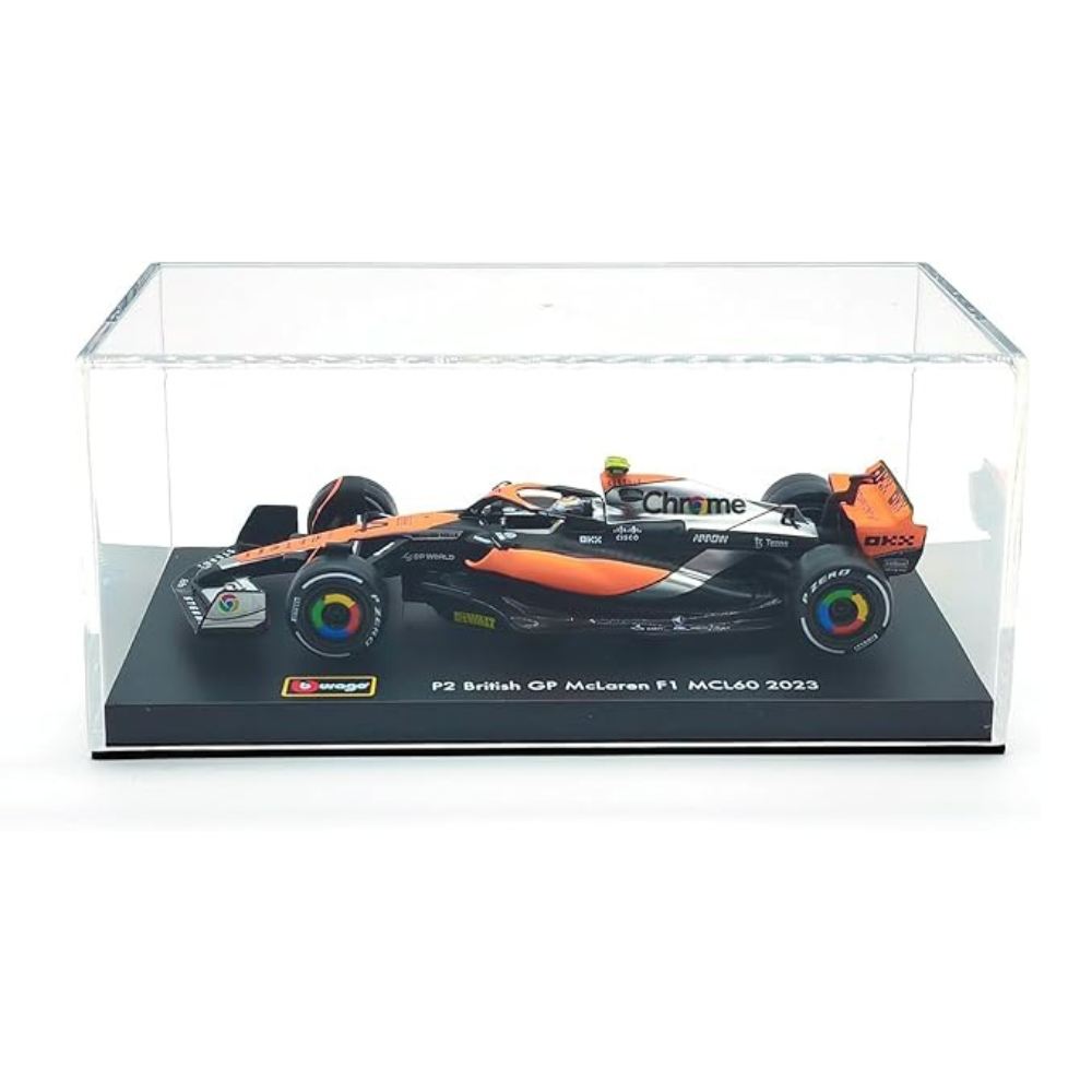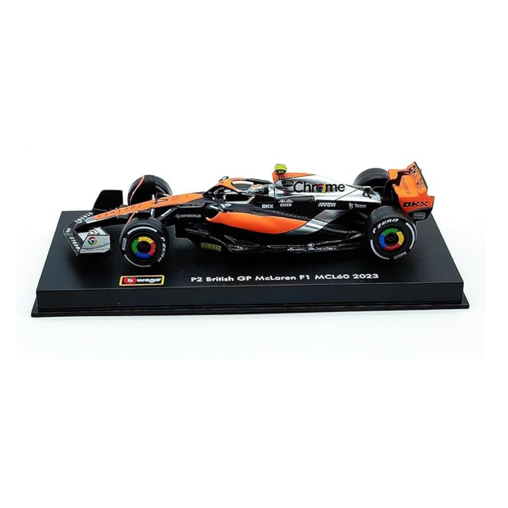 Celebrate the thrill of Formula 1 racing with this 1:43 scale model of the McLaren MCL60 #4, as driven by Lando Norris at the 2023 British Grand Prix. This high-quality die-cast alloy model by Bburago captures the sleek design and aerodynamic features of the real F1 car, making it a must-have for collectors and racing enthusiasts.
