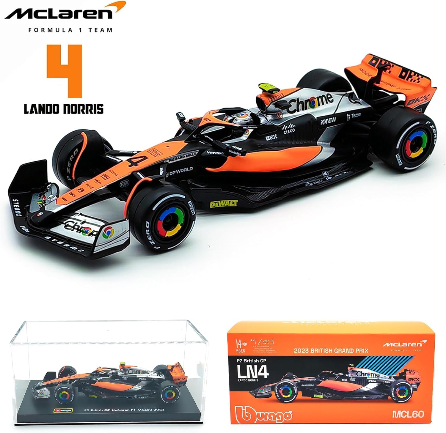 ✔️ Authentic Replica – Meticulously detailed design replicating the McLaren MCL60 from the 2023 British GP