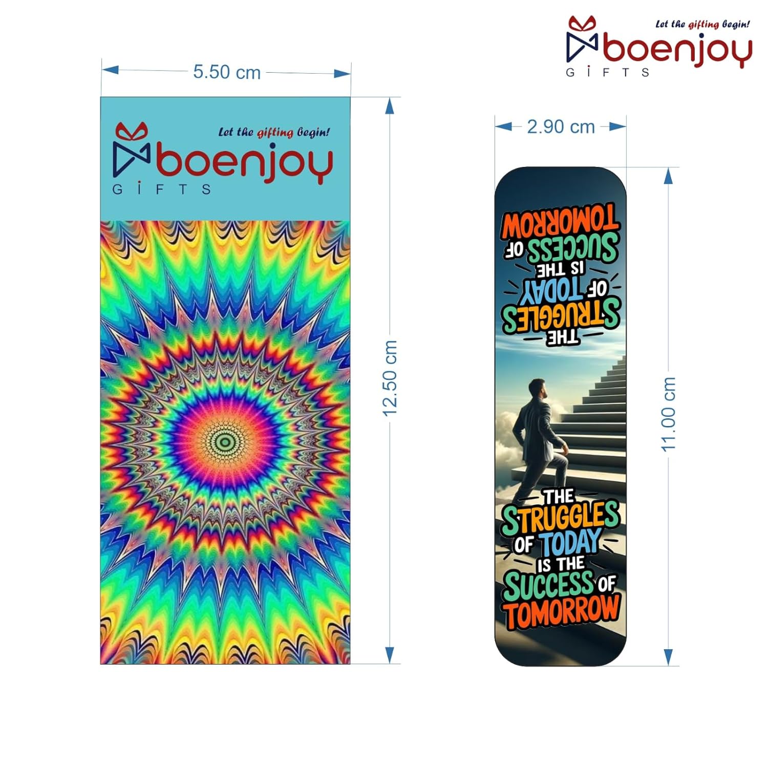 Each bookmark is thoughtfully sized to fit all types of books without damaging pages. The magnetic bookmarks (2.9 × 11 cm) securely clip onto pages to prevent slipping, while the paper bookmarks (5.5 × 12.5 cm) provide a classic and lightweight option for journals and planners.