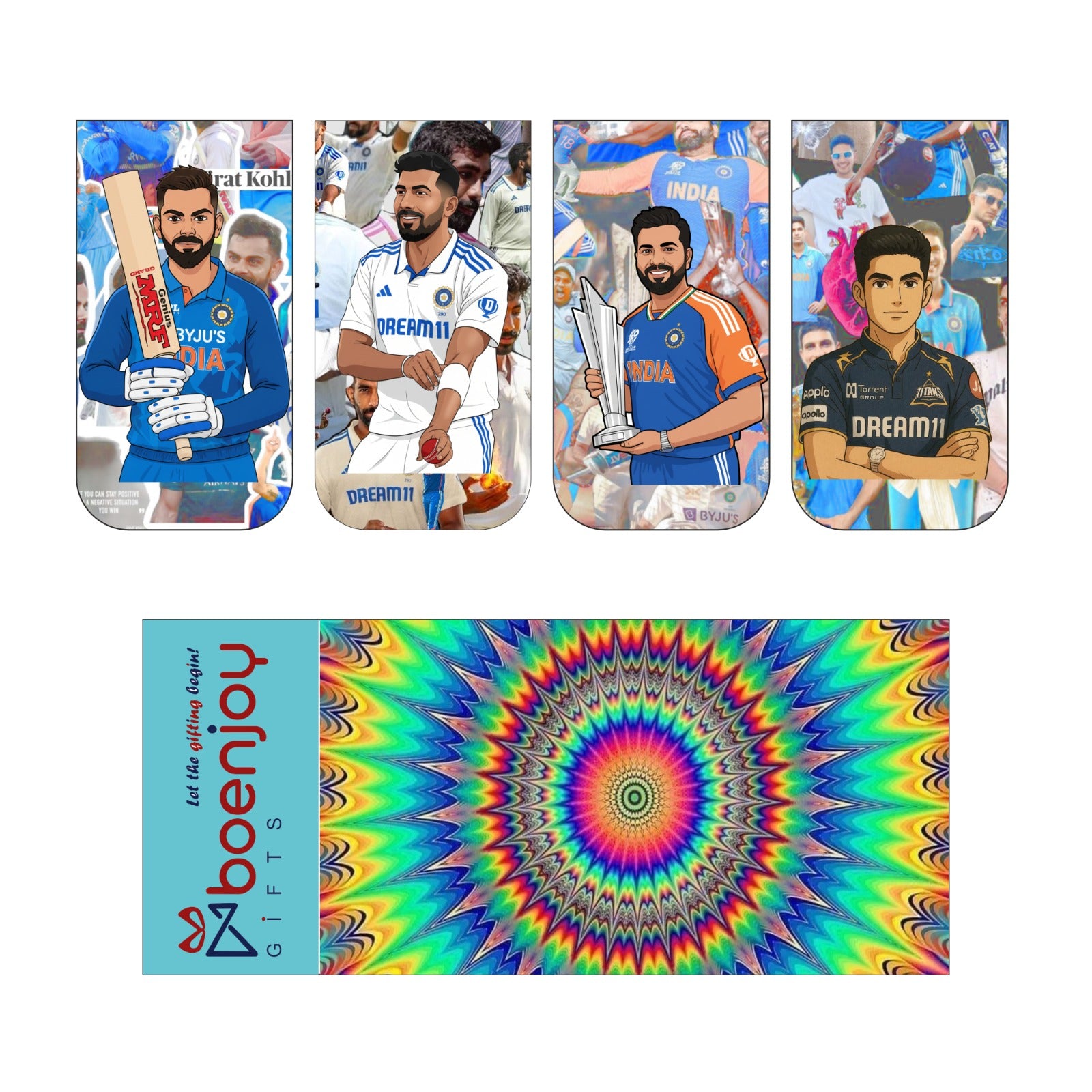Indian Cricketer Bookmark Set of 10-8 Magnetic Bookmarks + 2 Paper Bookmarks for Book Lovers, (11 x 2.9 cm)
