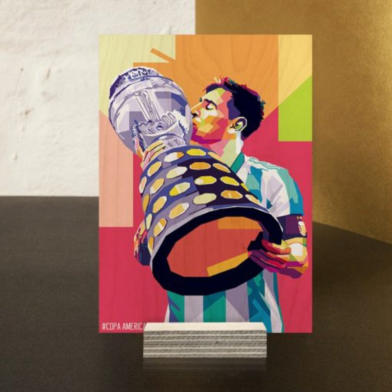Lionel Messi (La Pulga) Copa America Trophy Wood Print | Ink Infused into the Wood | Soccer ; PSG ; Argentina |