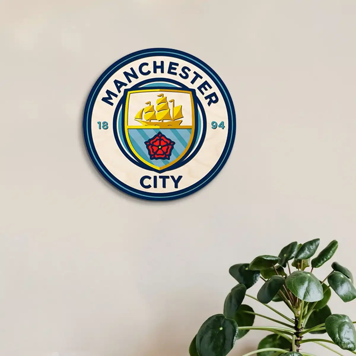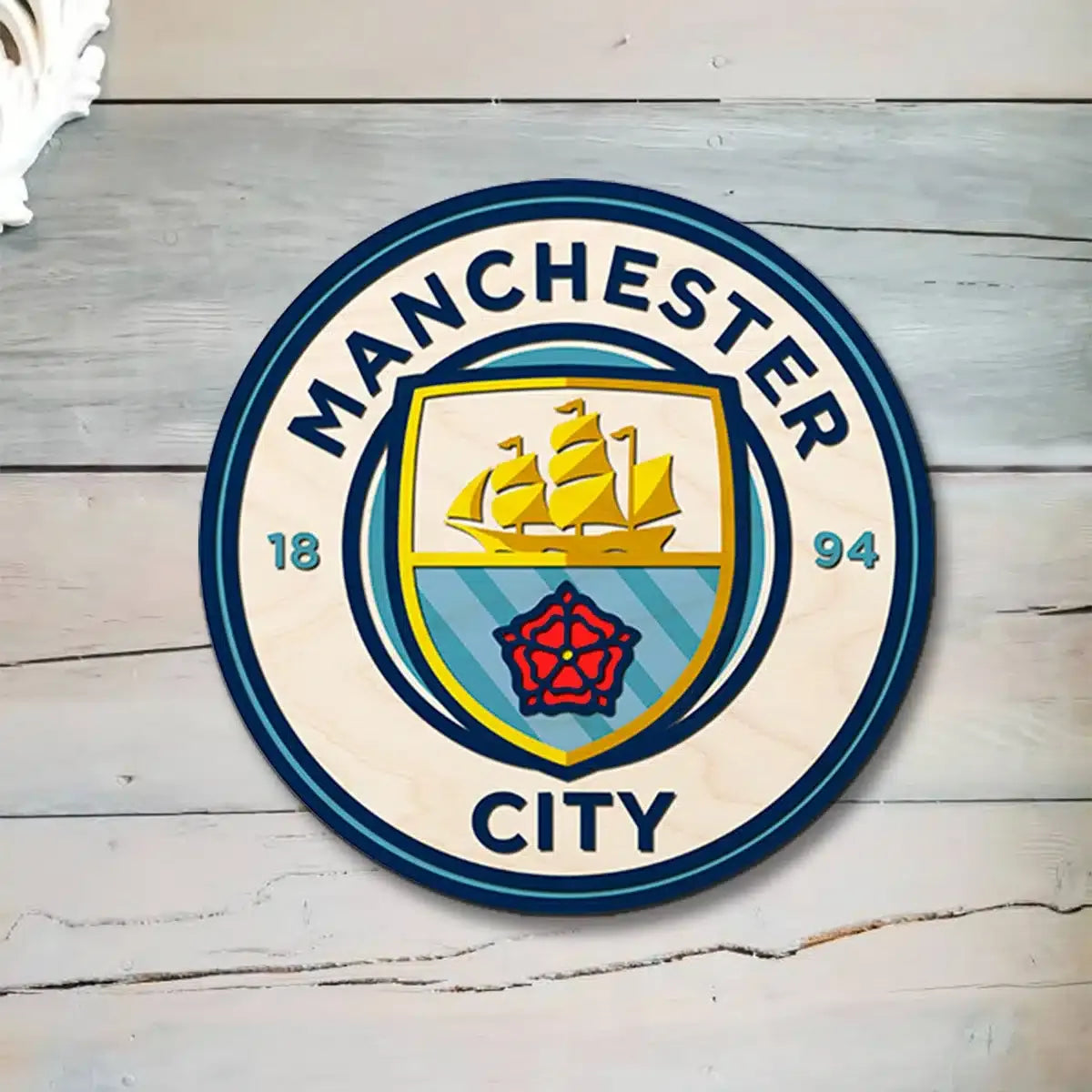 Manchester City Coloured Wooden Crest | 12 inch x 12 inch