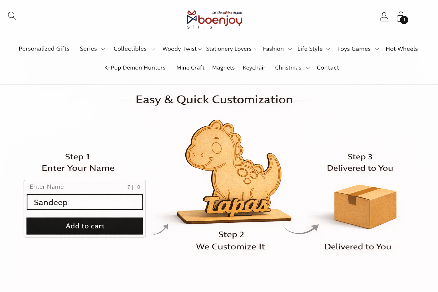 If You transact on the Website, You shall be subject to the policies that are applicable to the Website for such transaction. By mere use of the Website, You shall be contracting with Boenjoy Gifts and these terms and conditions including the policies constitute Your binding obligations, with Boenjoy Gifts.
