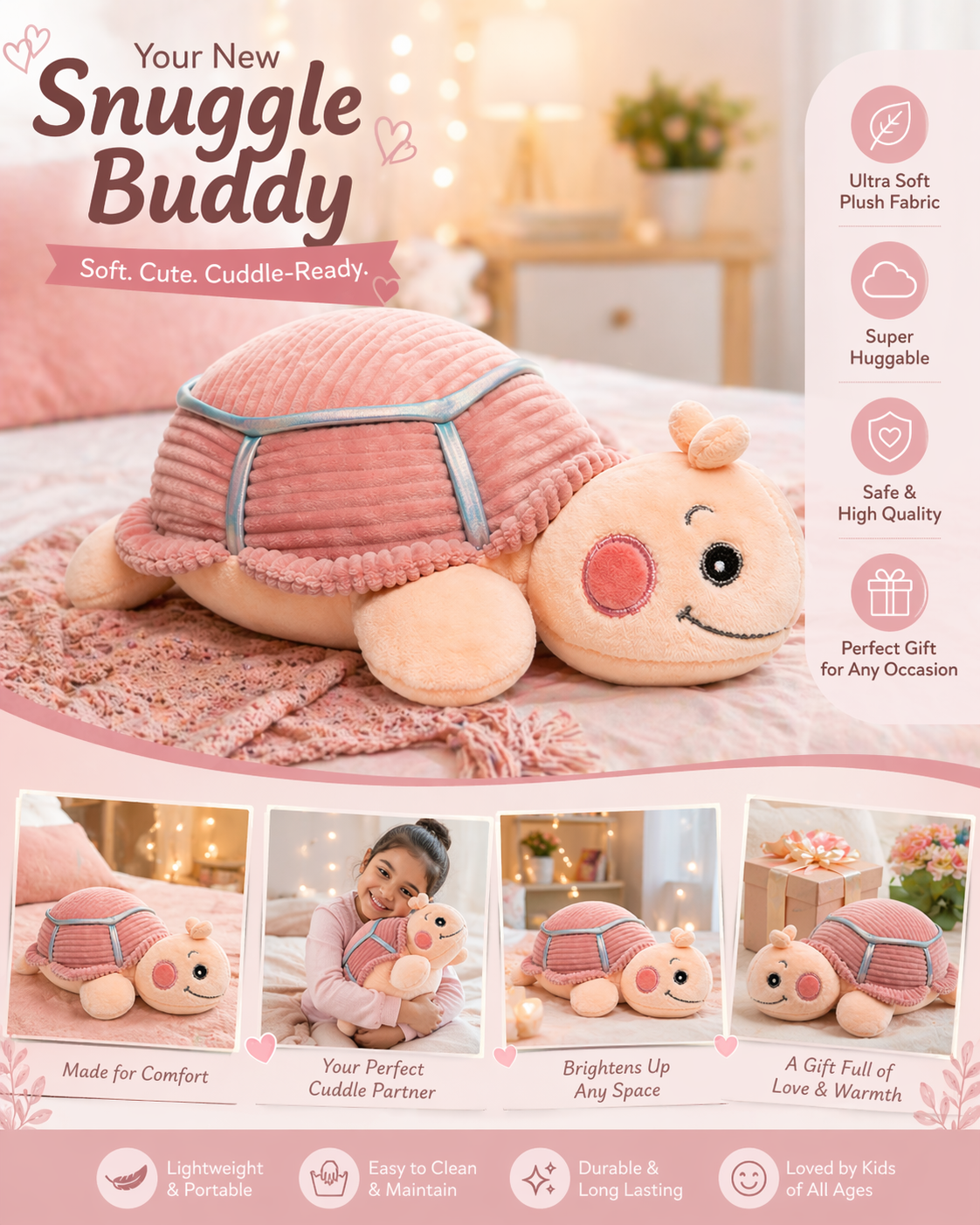 This adorable pink turtle plush toy is designed to bring comfort, joy, and endless hugs. Made with ultra-soft premium fabric, it feels super gentle on the skin and is perfect for kids of all ages.