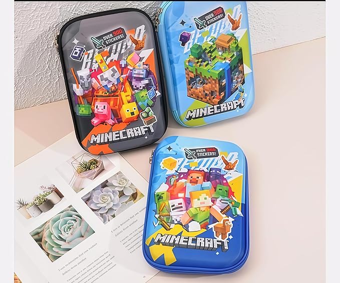 Mine - craft Pencil Case for Kids – Pack of 1, Large Capacity Waterproof Stationery Pouch with Zipper| Cute Hardtop Pencil Box for School, Boys & Girls (1 PC- Random Design) Size 22X15 cm