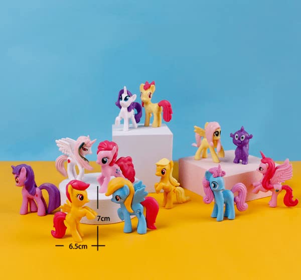 Pony Figures/Unicorn Figures - Set of 12 Figures - Action Figures | The one Horned Mystical Figures | 7 cm | Cake Toppers | Room Garden | 12 Pcs