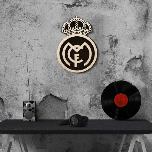 Real Madrid Black & White Wooden Crest | 12 inch x 12 inch