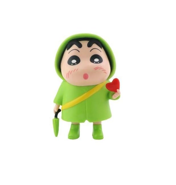 Shinchan Raincoat Figures - Figure 1pc | Cake Topper/Toy for Car Dashboard, Study Table Office Desk Collectible | 10 cm | Green
