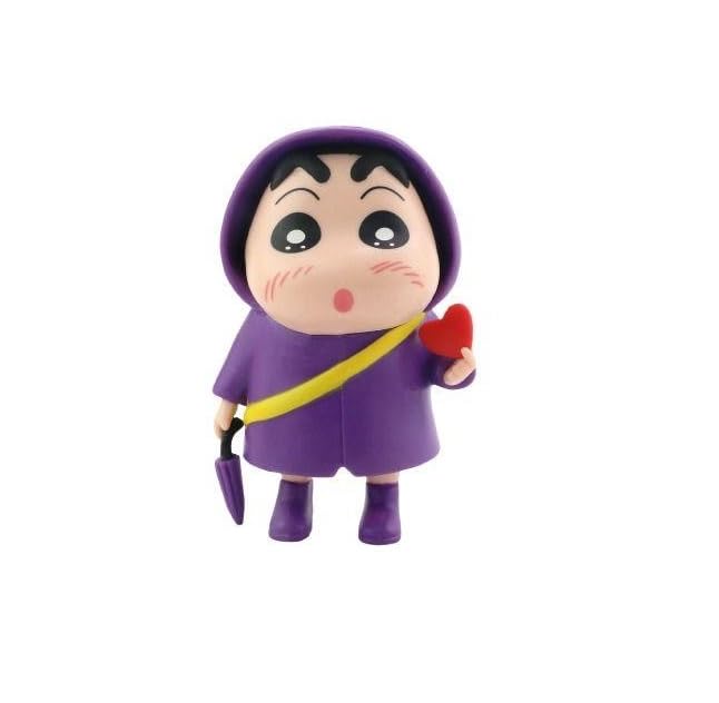 Shinchan Raincoat Figures - Figure 1pc | Cake Topper/Toy for Car Dashboard, Study Table Office Desk Collectible | 10 cm | Purple