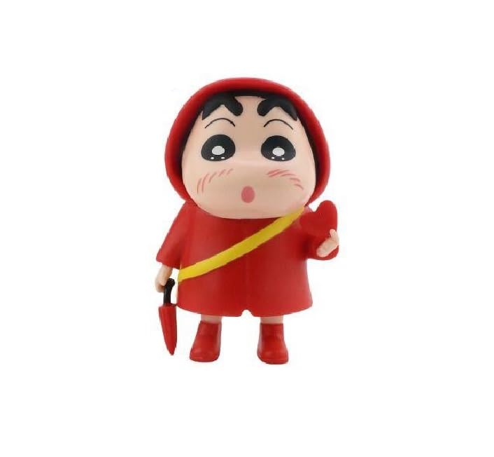 Shinchan Raincoat Figures - Figure 1pc | Cake Topper/Toy for Car Dashboard, Study Table Office Desk Collectible | 10 cm | Red