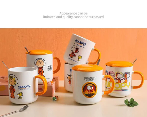 Snoopy Peanut Ceramic Milk & Coffee Mug With Lid And Spoon