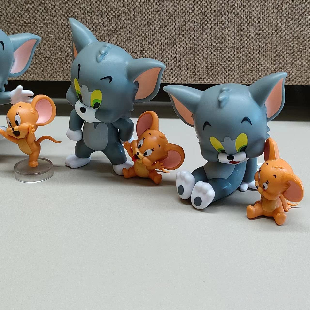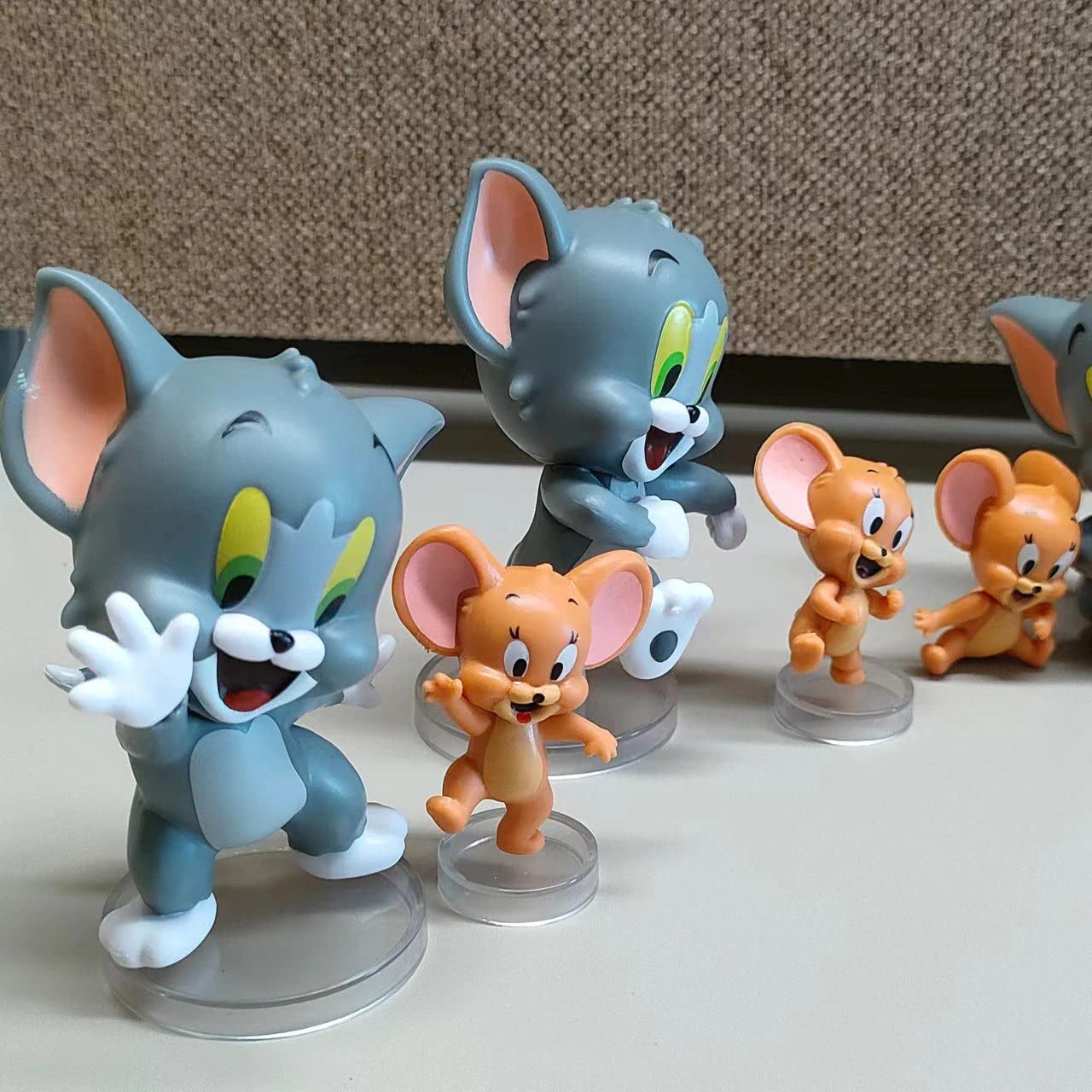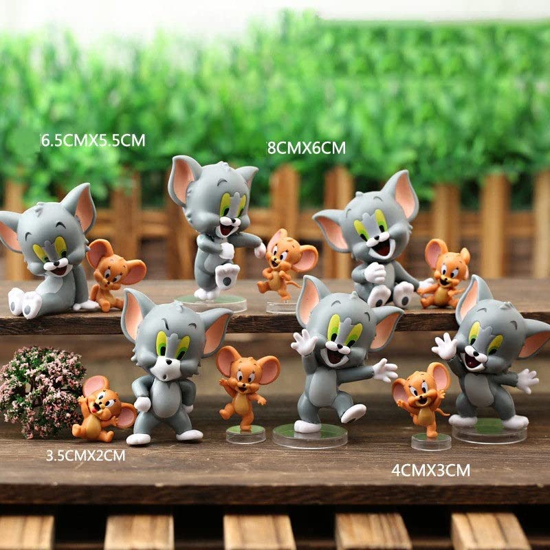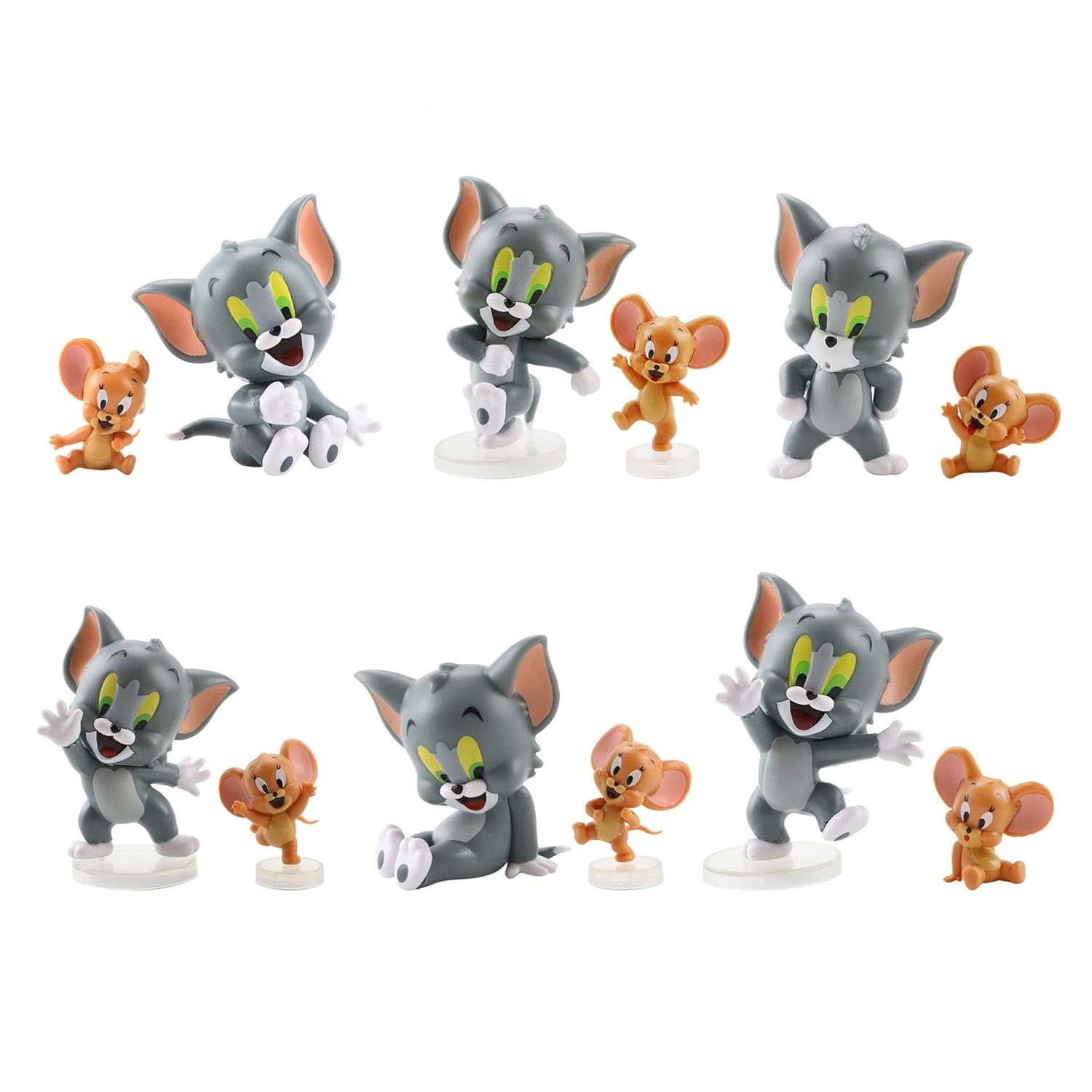 Tom & Jerry - 6 sets of 2 Figures - Action Figure | Best Animated Most Loved Cartoon | 6.5cm | Cat & Mouse Partners | Cake Toppers | Room Garden | Red Base not Included |